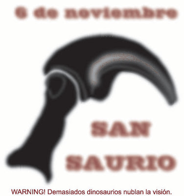 De repente miles de imágenes se archivaron en mi memoria, que si Allosaurus, Iguanodon, Tyrannosaurus, etc. Incluso como se desplazaban y como dejaban las huellas. ¡Ya lo se todo! La paleo de dinosaurios ya no tiene secretos para mi. Pero si vosotros queréis saberlo, tenéis dos opciones. La primera es volver al lugar de la aparición y esperar que San Saurio este receptivo. La segunda es ir a ver la lectura de mi tesis...